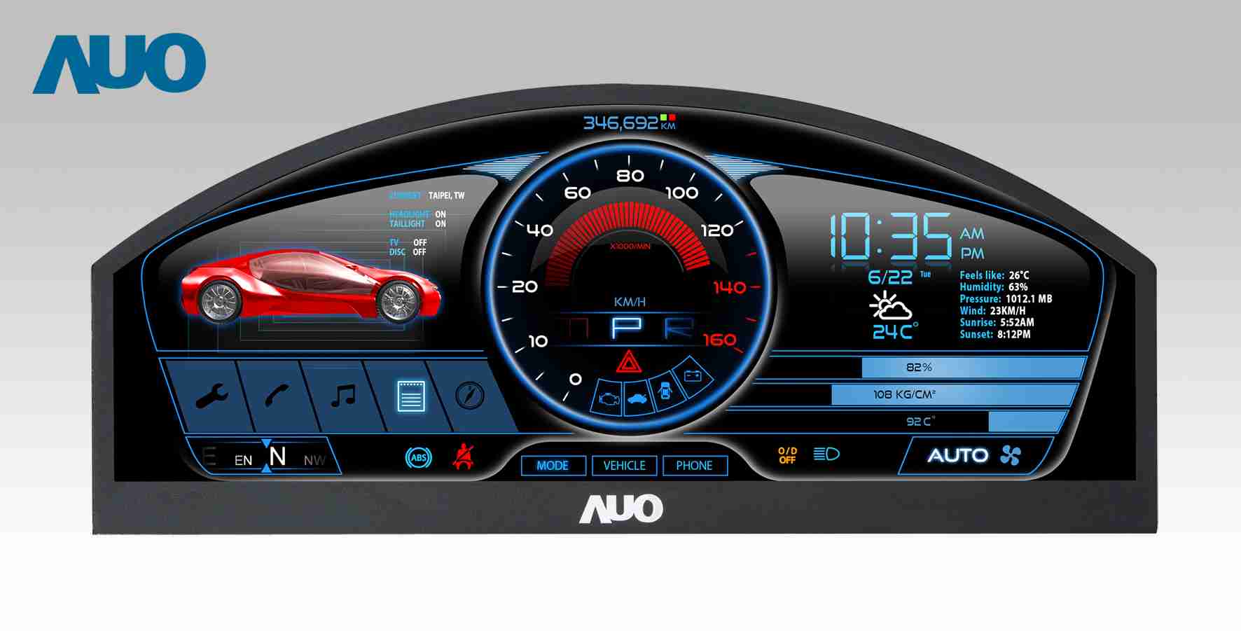 欧陆注册 12.3吋超高解析异型切割车用面板,,,拥有流线外观及精细画质